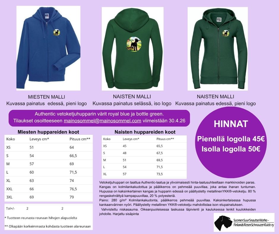 Vetoketjuhuppari on taattua Authentic-laatua ja ylivoimaisesti hinta-laatusuhteeltaan markkinoiden paras. Kangas on kolmilankakudottua ja päälikerros on pehmeää puuvillaa, joka antaa ihanan tuntuman. Hupussa on kaksinkertainen kangas ja hupparin edessä on päällystetty metallinenYKK®-vetoketju.